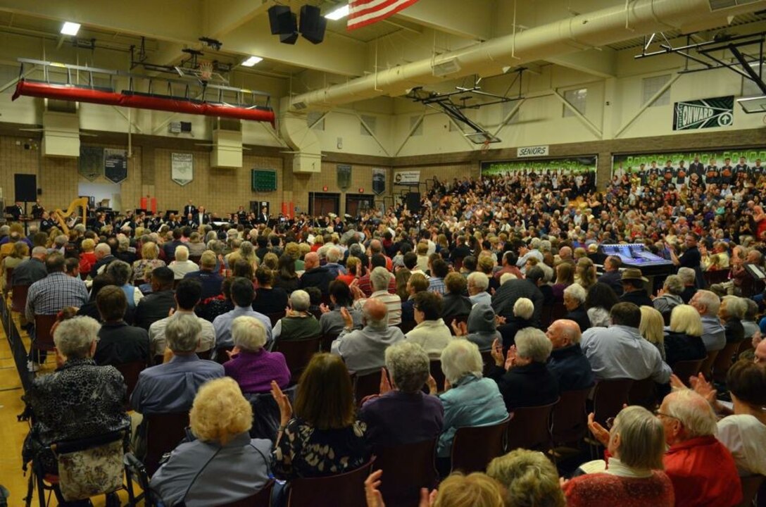 The United States Air Force Concert Band and Singing Sergeants recently returned from a 10-day tour to Utah, Nevada, and California. Their final concert in Fairfield, California was packed with an extremely enthusiastic and patriotic crowd. The Band was also joined by instrumental and vocal students from three local area high schools. (U.S. Air Force Photo/released)